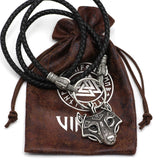 Viking Leather Cord Odin's Ravens Of Thor's Wolf Necklace NLID003 With Collector's Bag